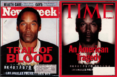 Another interesting episode to analyze concerns a sadly famous Time magazine cover: when in 1994 former athlete and actor O.J. Simpson was arrested for the murder of his ex-wife Nicole Brown Simpson, the magazine published Simpson's police mugshot on the cover. Time shrank the identification number—probably to balance the size with the title—and especially darkened the image, making O.J. Simpson's face blacker and more menacing. The operation became particularly evident because Newsweek used the same photograph, unmodified, on its cover, thus putting both versions of the mugshot before everyone's eyes. Time's choice to darken O.J. Simpson's photo was harshly criticized not only by civil rights groups, but also by journalists and the public, so much so that the magazine published a letter of apology worth a careful read.