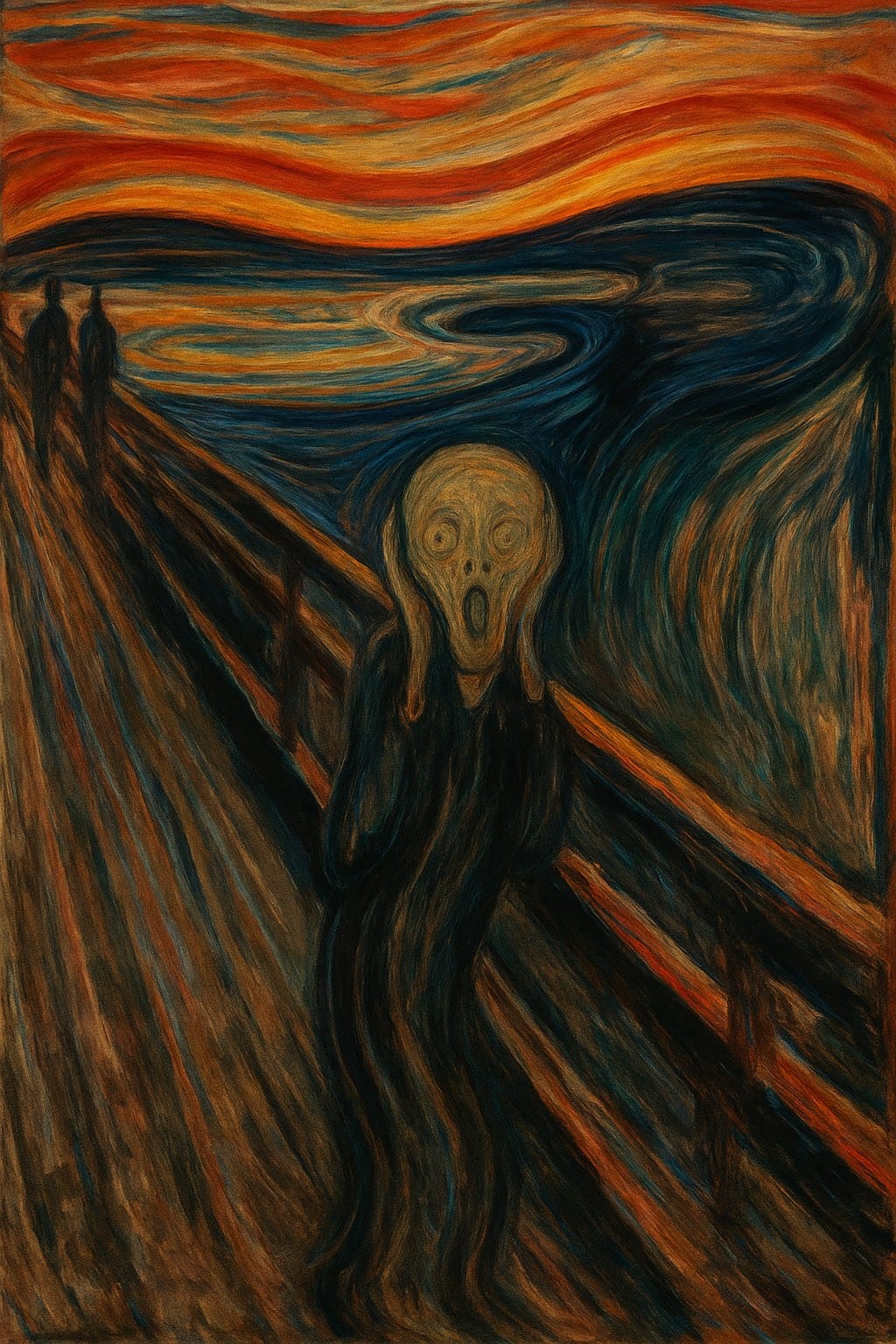 The original Scream, and on the right, the version recreated by ChatGPT from a description of the painting.